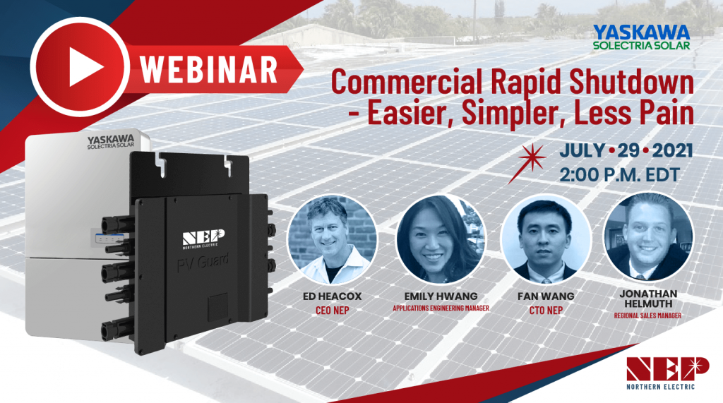 Learn about simplified rapid shutdown solutions for commercial rooftop applications. No fuss, no touch, factory integrated RSD devices within the family of Solectria inverters - learn what they are and how they work. Also, learn about the NEP panel level devices designed to lower installed cost and labor expense... see how commissioning and service can be improved by leveraging this overall RSD platform.